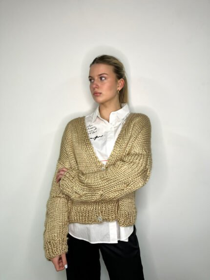 Sweater negro tejido a mano con cuellito. Talle único