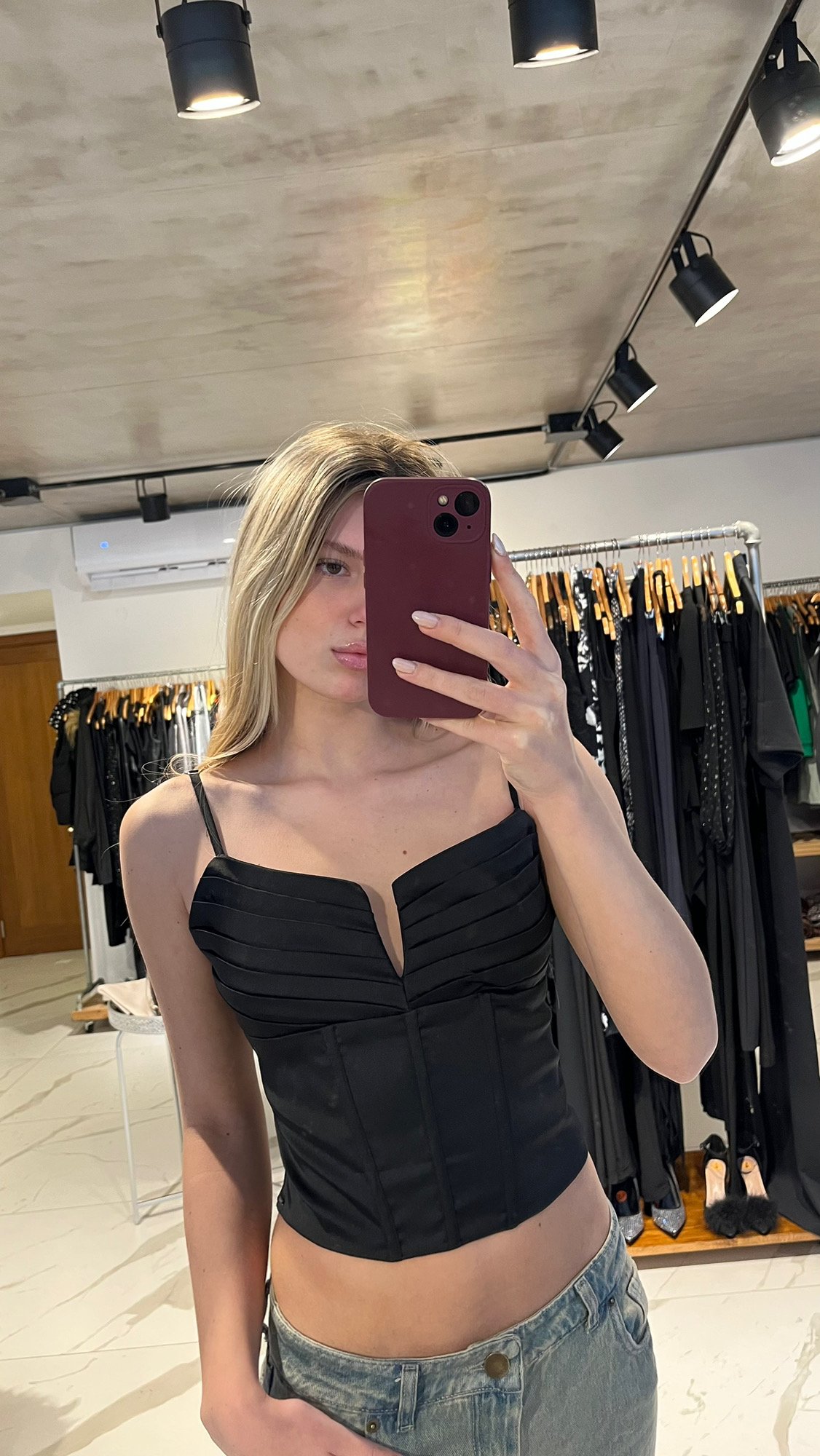 Top negro corset negro con frunce en el pecho, cierre en la espalda. Talle L